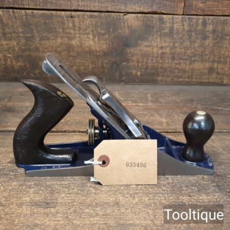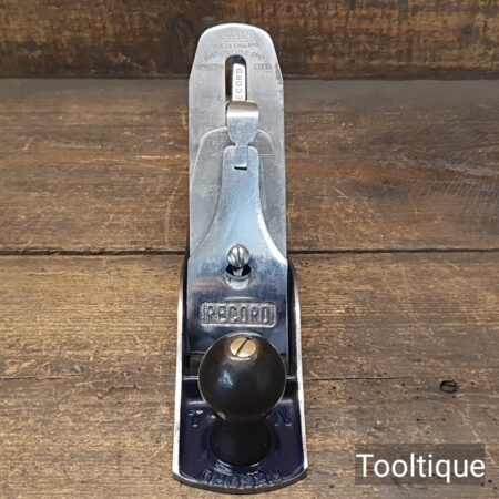 Vintage 1950’s Record No: 04 Smoothing Plane, fully refurbished ready for use and in good used condition. When refurbishing planes, we do not merely clean them to make them look good, they are restored to a level that ensures this plane is actually ‘in plane to within 0.02mm’ sharpened, honed and all the components are thoroughly cleaned so that they move freely. Our planes are specifically reconditioned to satisfy professional tradesmen who will instantly know the difference between buying one of our planes over general other used ones.
