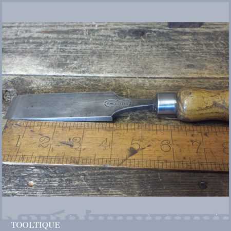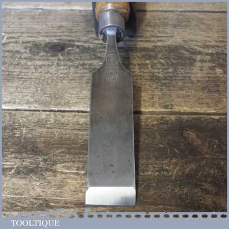 The chisel has been checked to ensure the tang is seated properly and the handle is solid and fit for use. All refurbished chisels are water cooled during the sharpening process to ensure the tempering is not affected. These old cast steel chisels are hand forged and far superior in quality because of the high carbon steel that was used which produces a keener edge, this was also generally used throughout the full length.