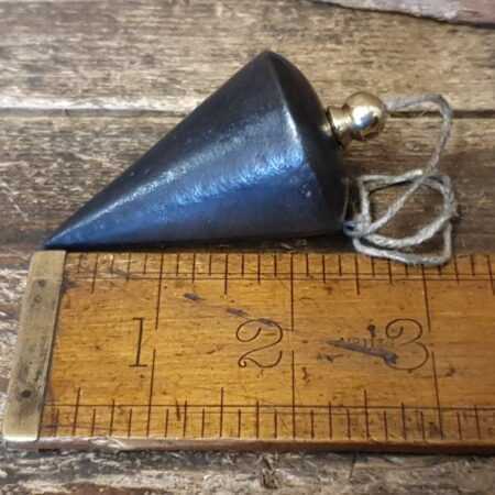 Vintage 2 ½” cast steel plumb bob with brass string retainer, in good used condition.