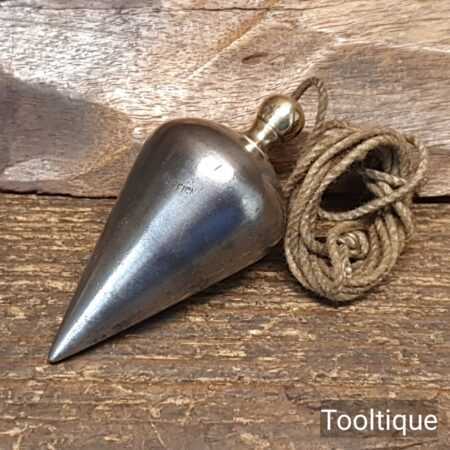 Vintage 2 ¾” cast steel plumb bob with a brass screw insert, in good used condition. Marked foreign and probably German in origin.