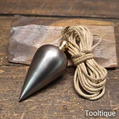 Vintage 2 ¾” cast steel plumb bob with brass string retainer, in good used condition.