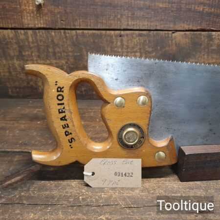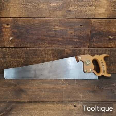 Vintage 20” Spear & Jackson No: 88 Spearior 9 Tpi cross cut panel saw, fully refurbished ready for use and in good used condition. Note: This is a lovely 1950’s saw sharpened using all three disciplines of slope, rake and fleam for a sharper cleaner cut.