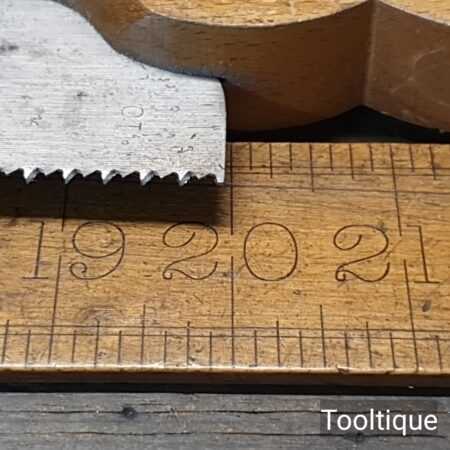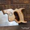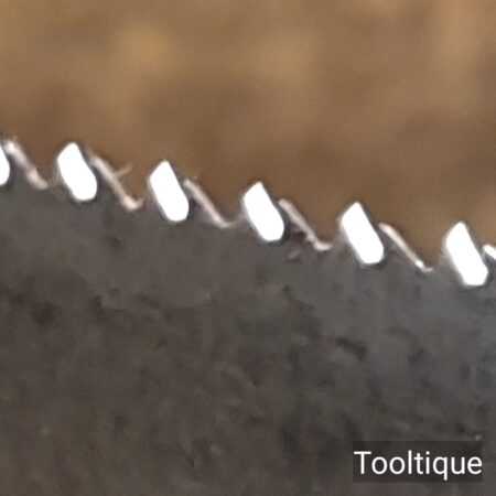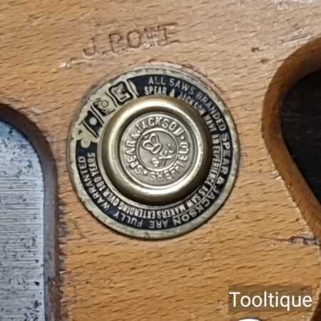 The saw has been thoroughly cleaned, jointed, resharpened, and set by hand so that all the hard work of getting an old vintage saw right has been undertaken. We do this so that the next sharpening is easier and no more than a quick freshen-up would be required. Those who are familiar with sharpening will know this is no small job and requires skill, effort and time to achieve good results.