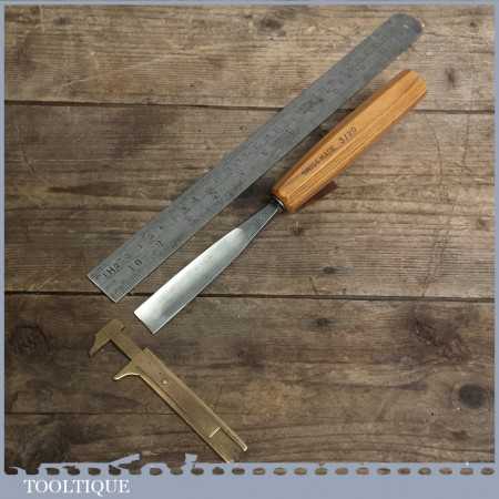 Vintage forged steel carving chisel by Pfiel in good condition and has been sharpened & honed ready for use, this curved straight shallow gouge measures approx 20mm” wide.