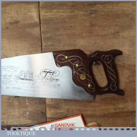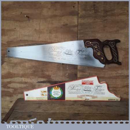 Vintage 22” – 10 tpi Sandvik No: 288 cross cut hand saw with original packaging sheath refurbished ready for use. The saw has been resharpened for the first time but had seen little use, hence the condition.