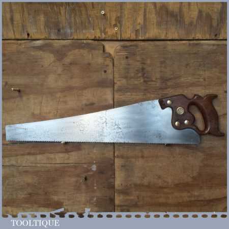 Vintage 22” Henry Disston, Philadelphia USA cross cut panel saw with 8 tpi, fully refurbished and sharpened ready for use. Note: Old timers often regarded these old Philly Disston’s as the best saws ever produced by any saw maker, before or since. Note some light pitting to the saw plate.