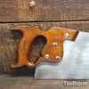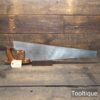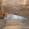 Vintage 22” Henry Disston USA Cross Cut Panel Saw with 9 Tpi, Sharpened ready for use and in good used condition. Note: Sharpened using all three disciplines of Rake, Slope & Fleam. The saw has been thoroughly cleaned, jointed, resharpened and set by hand so that all the hard work of getting an old vintage saw right has been undertaken. We do this so that the next sharpening is easier and no more than a quick freshen up would be required. Those who are familiar with sharpening will know this is no small job and requires skill, effort and time to achieve good results.