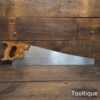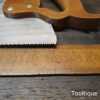 The saw has been thoroughly cleaned, jointed, resharpened and set by hand so that all the hard work of getting an old vintage saw right has been undertaken. We do this so that the next sharpening is easier and no more than a quick freshen up would be required. Those who are familiar with sharpening will know this is no small job and requires skill, effort and time to achieve good results.
