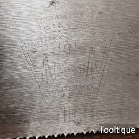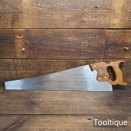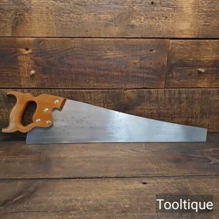 Vintage 22” Henry Disston USA D8 Cross cut panel saw 9 Tpi fully refurbished ready for use and in good used condition. Note: This saw has been sharpened incorporating all three disciplines, slope, rake and fleam. The steel in these Disston saws is superb, they are hard on the file yet supple enough to set and in my opinion has never been replicated.