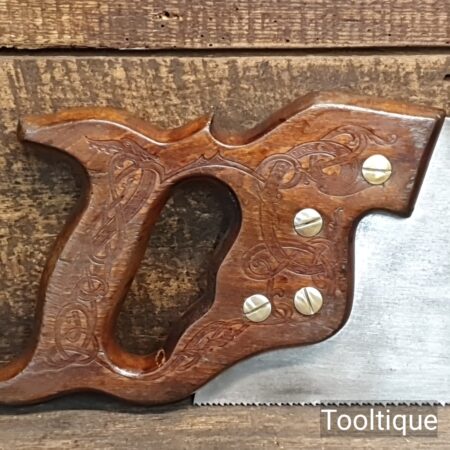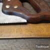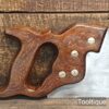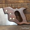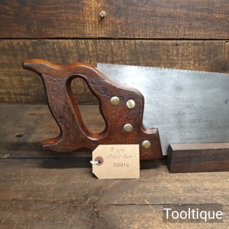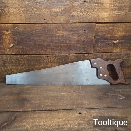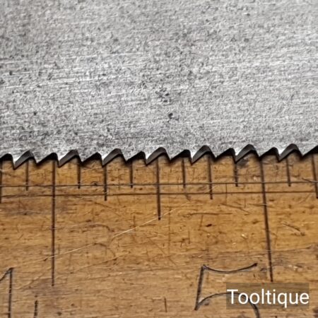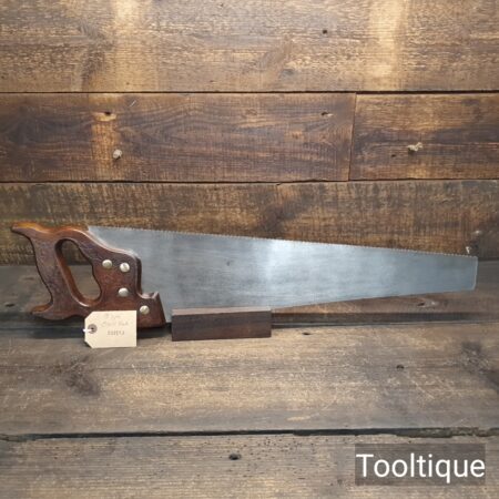 Vintage 22” Sandvik Cross Cut Panel Saw, Sharpened ready for use and in good used condition. Note: Sharpened using all three disciplines of Rake, Slope & Fleam. The saw has been thoroughly cleaned, jointed, resharpened and set by hand so that all the hard work of getting an old vintage saw right has been undertaken. We do this so that the next sharpening is easier and no more than a quick freshen up would be required. Those who are familiar with sharpening will know this is no small job and requires skill, effort and time to achieve good results.