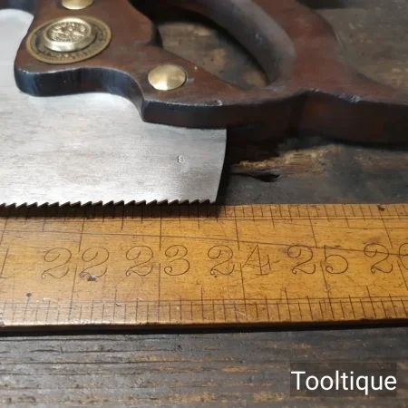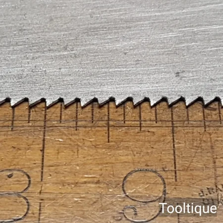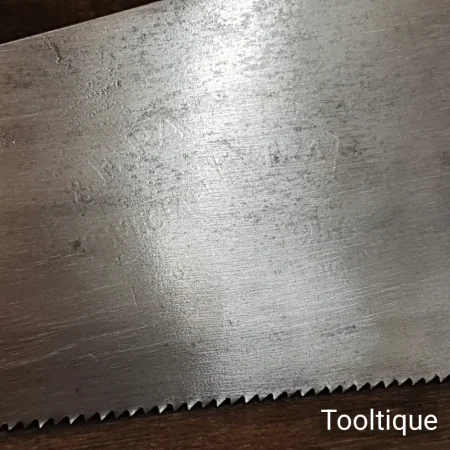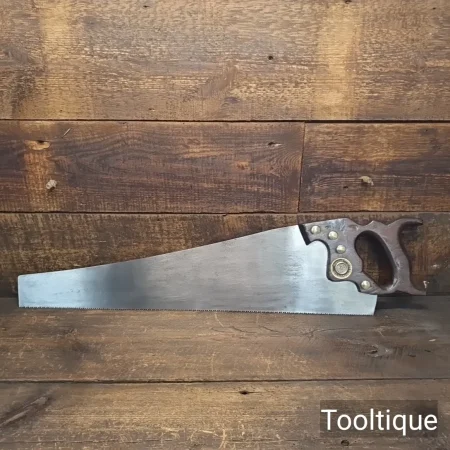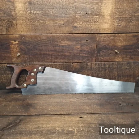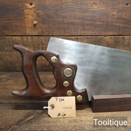 Vintage 24” A.F Parkes Co. Ltd 7 Tpi Rip Saw with a Mahogany Handle, fully refurbished ready for use and in good used condition. Note: Sharpened with a relaxed rake at the toe, becoming more aggressive towards the handle. The saw has been thoroughly cleaned, jointed, resharpened and set by hand so that all the hard work of getting an old vintage saw right has been undertaken. We do this so that the next sharpening is easier and no more than a quick freshen up would be required. Those who are familiar with sharpening will know this is no small job and requires skill, effort and time to achieve good results.