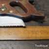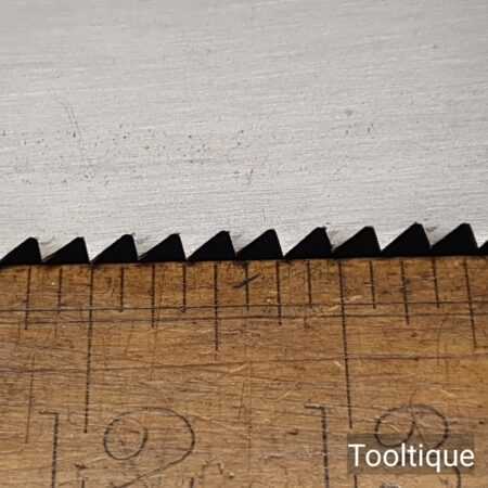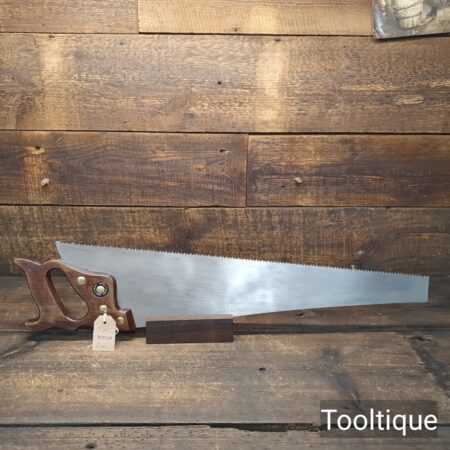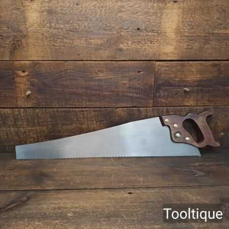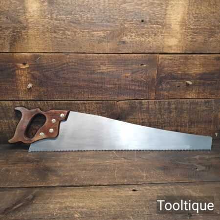 Vintage 24” Marples Ridgeway 5 Tpi Rip Saw refurbished ready for use and in good used condition. Note: Barely visible handle repair, glue screwed and filled and much stronger. The saw has been thoroughly cleaned, jointed, resharpened and set by hand so that all the hard work of getting an old vintage saw right has been undertaken. We do this so that the next sharpening is easier and no more than a quick freshen up would be required. Those who are familiar with sharpening will know this is no small job and requires skill, effort and time to achieve good results.