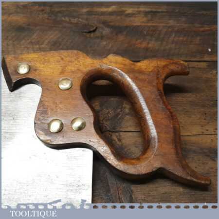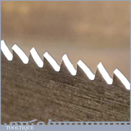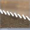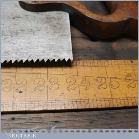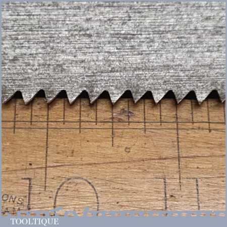 The saw has been thoroughly cleaned, jointed, resharpened and set by hand so that all the hard work of getting an old vintage saw right has been undertaken. We do this so that the next sharpening is easier and no more than a quick freshen up would be required. Those who are familiar with sharpening will know this is no small job and requires skill, effort and time to achieve good results.