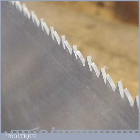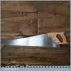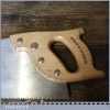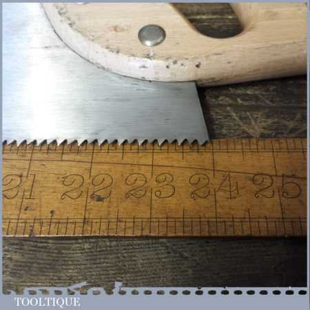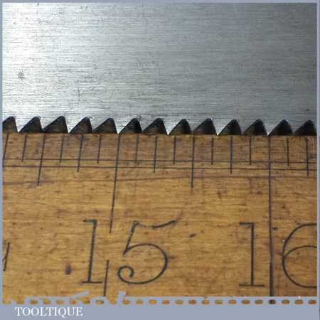 The saw has been thoroughly cleaned, jointed, resharpened and set by hand so that all the hard work of getting an old vintage saw right has been undertaken. We do this so that the next sharpening is easier and no more than a quick freshen up would be required. Those who are familiar with sharpening will know this is no small job and requires skill, effort and time to achieve good results.