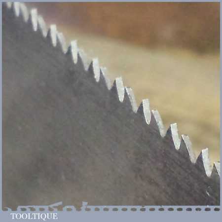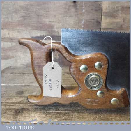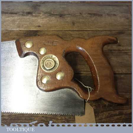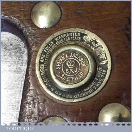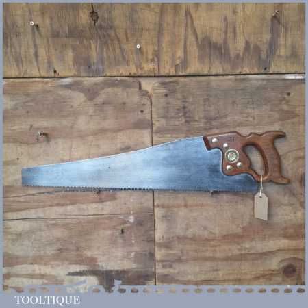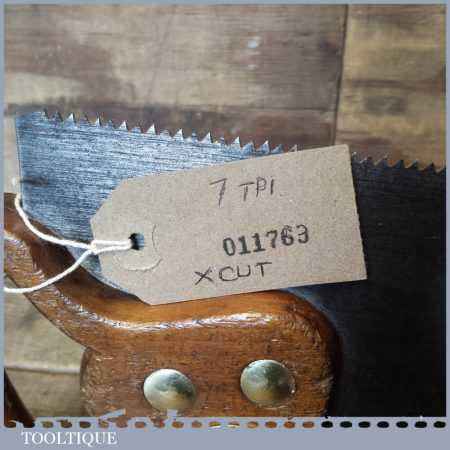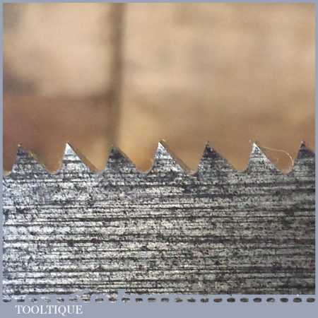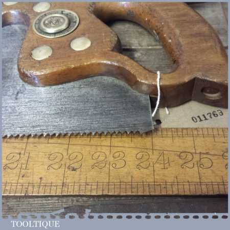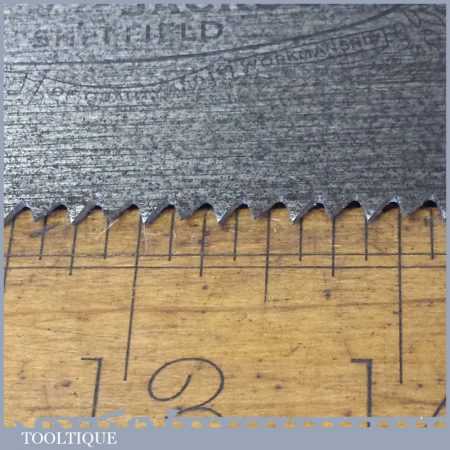 The saw has been thoroughly cleaned, jointed, resharpened and set by hand so that all the hard work of getting an old vintage saw right has been undertaken. We do this so that the next sharpening is easier and no more than a quick freshen up would be required. Those who are familiar with sharpening will know this is no small job and requires skill, effort and time to achieve good results.