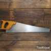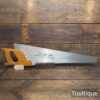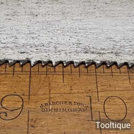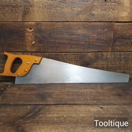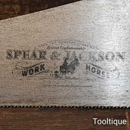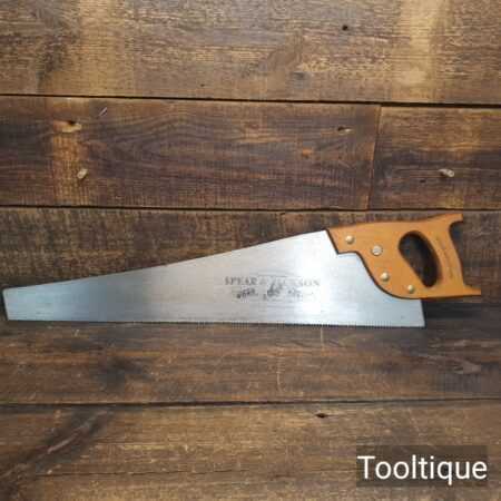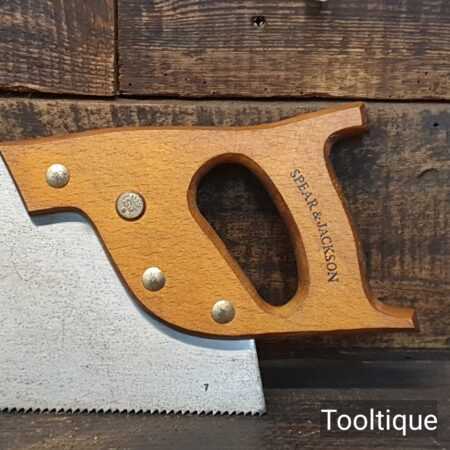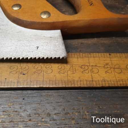 Vintage 24” Spear & Jackson rip panel saw with 6 tpi, fully refurbished and sharpened ready for use. The saw has been thoroughly cleaned, jointed, resharpened and set by hand so that all the hard work of getting an old vintage saw right has been undertaken. We do this so that the next sharpening is much easier and no more than a quick freshen up would be required. Those who are familiar with sharpening will know this is no small job and requires skill, effort and time to achieve good results.