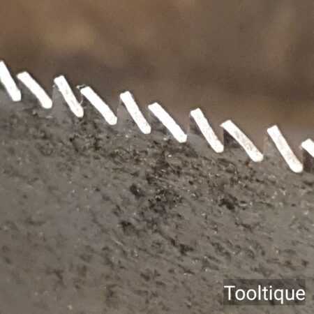 The saw has been thoroughly cleaned including under the handle, jointed, resharpened and set by hand so that all the hard work of getting an old vintage saw right has been undertaken. We do this so that the next sharpening is easier and no more than a quick freshen up would be required. Those who are familiar with sharpening will know this is no small job and requires skill, effort and time to achieve good results