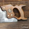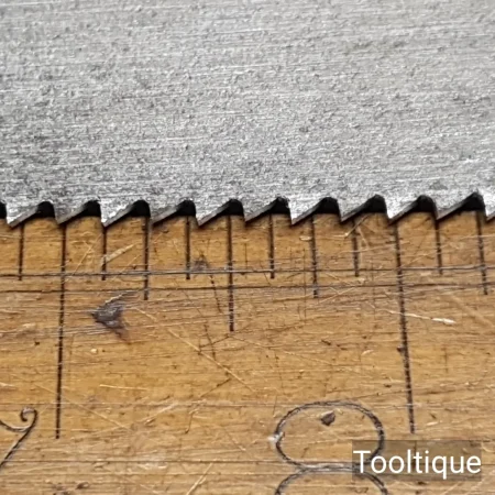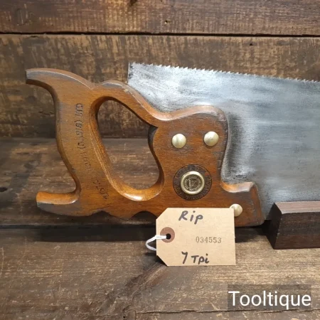 Vintage 24” Taylor Brothers 7 Tpi Rip Saw with a Beechwood Handle, fully refurbished ready for use and in good used condition. The saw has been thoroughly cleaned, jointed, resharpened and set by hand so that all the hard work of getting an old vintage saw right has been undertaken. We do this so that the next sharpening is easier and no more than a quick freshen up would be required. Those who are familiar with sharpening will know this is no small job and requires skill, effort and time to achieve good results.