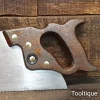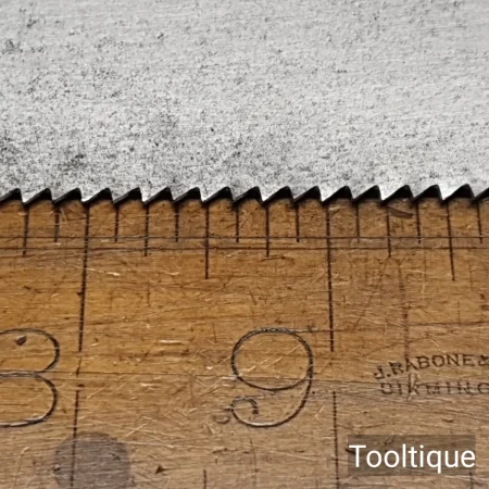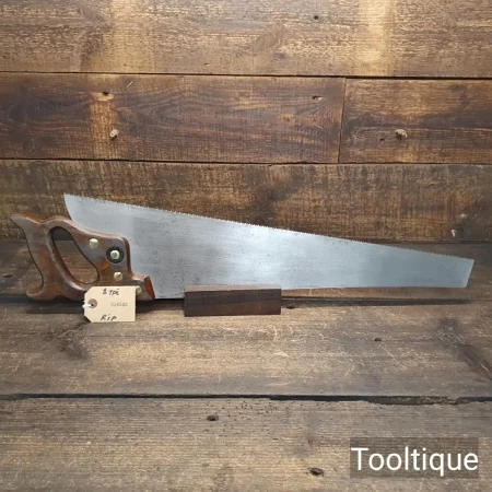 Vintage 24” Tyzack Turner 8 Tpi Rip Saw with a Beechwood Handle, fully refurbished ready for use and in good used condition. Note: Sharpened with a relaxed rake at the toe for easier start and less likely to grab gaining in aggression towards the handle, finer tooth makes this ideal for hardwoods.