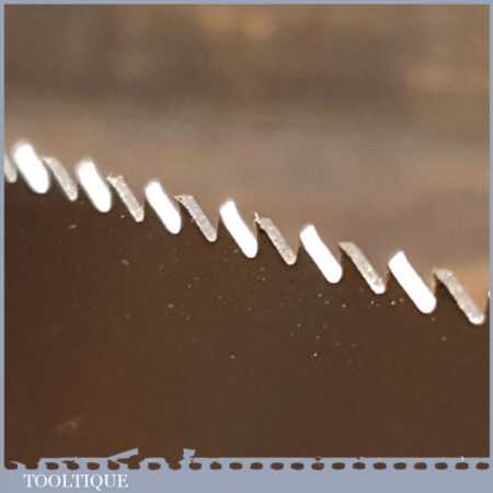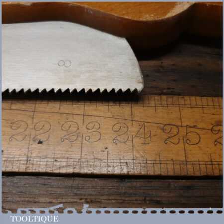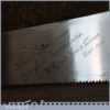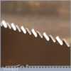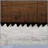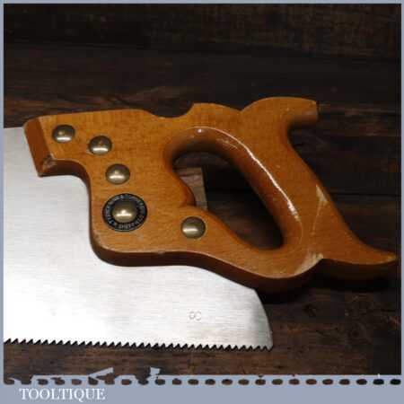 The saw has been thoroughly cleaned, jointed, resharpened and set by hand so that all the hard work of getting an old vintage saw right has been undertaken. We do this so that the next sharpening is easier and no more than a quick freshen up would be required. Those who are familiar with sharpening will know this is no small job and requires skill, effort and time to achieve good results.