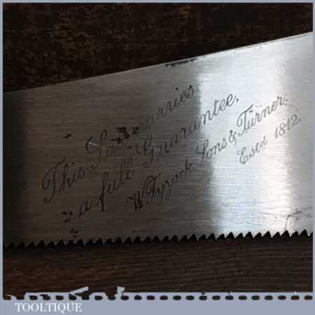 Vintage 24” W. Tyzack Sons & Turner Ltd No: 122 cross cut panel handsaw with 6 ½” tpi, fully refurbished and sharpened ready for use.