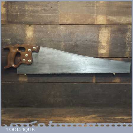 Vintage 25” Henry Disston, Philadelphia USA D8 rip saw with 5 tpi, fully refurbished and sharpened ready for use. This old saw has the thumb hole grip in the applewood handle for a two-handed thrust. Note: Old timers often regarded these old Philly Disston’s as the best saws ever produced by any saw maker, before or since.