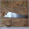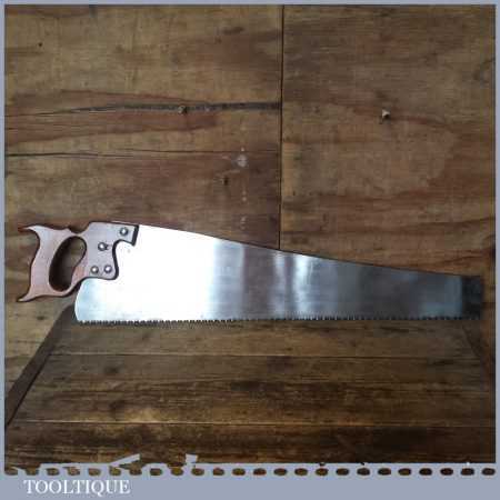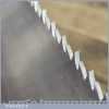 The saw has been thoroughly cleaned, jointed, resharpened and set by hand so that all the hard work of getting an old vintage saw right has been undertaken. We do this so that the next sharpening is easier and no more than a quick freshen up would be required. Those who are familiar with sharpening will know this is no small job and requires skill, effort and time to achieve good results.