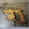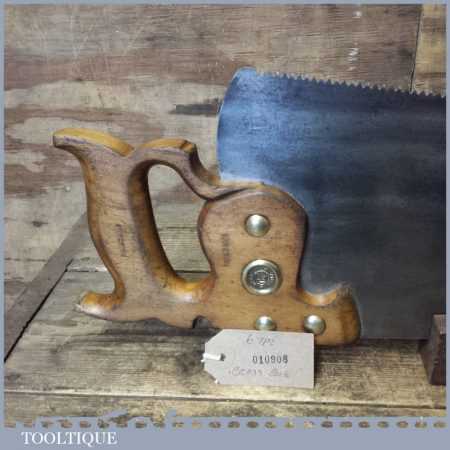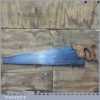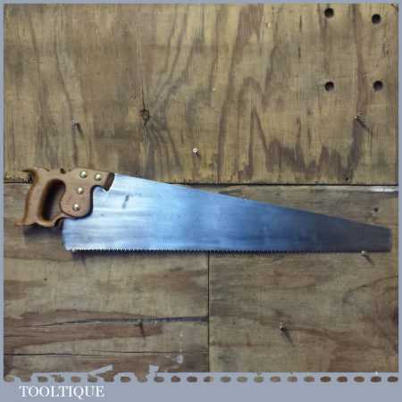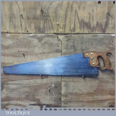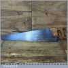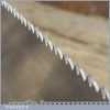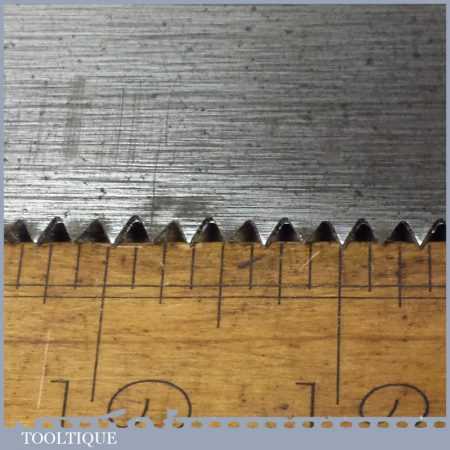 The saw has been thoroughly cleaned, jointed, resharpened and set by hand so that all the hard work of getting an old vintage saw right has been undertaken. We do this so that the next sharpening is easier and no more than a quick freshen up would be required. Those who are familiar with sharpening will know this is no small job and requires skill, effort and time to achieve good results.