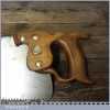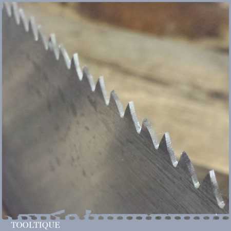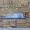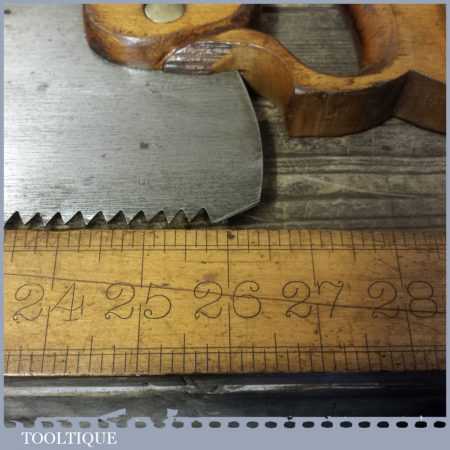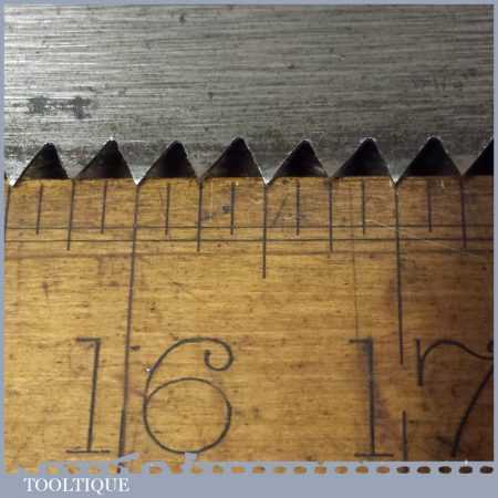 The saw has been thoroughly cleaned, jointed, resharpened and set by hand so that all the hard work of getting an old vintage saw right has been undertaken. We do this so that the next sharpening is easier and no more than a quick freshen up would be required. Those who are familiar with sharpening will know this is no small job and requires skill, effort and time to achieve good results.