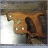 The saw has been thoroughly cleaned, jointed, resharpened and set by hand so that all the hard work of getting an old vintage saw right has been undertaken. We do this so that the next sharpening is easier and no more than a quick freshen up would be required. Those who are familiar with sharpening will know this is no small job and requires skill, effort and time to achieve good results.