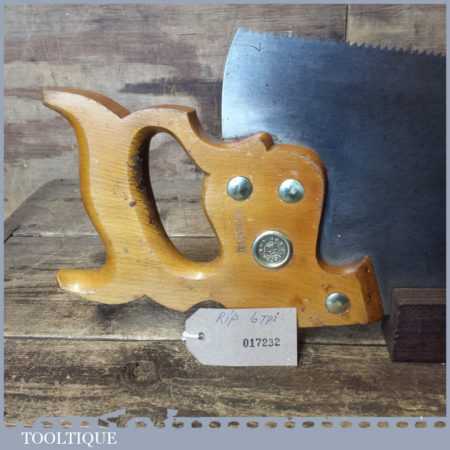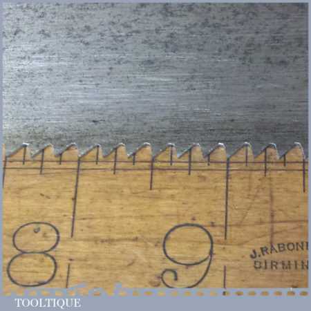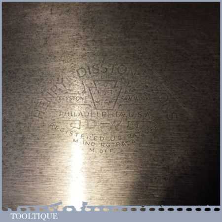 The saw has been thoroughly cleaned, jointed, resharpened and set by hand so that all the hard work of getting an old vintage saw right has been undertaken. We do this so that the next sharpening is easier and no more than a quick freshen up would be required. Those who are familiar with sharpening will know this is no small job and requires skill, effort and time to achieve good results.
