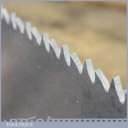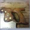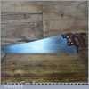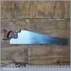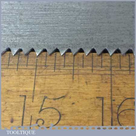 The saw has been thoroughly cleaned, jointed, resharpened and set by hand so that all the hard work of getting an old vintage saw right has been undertaken. We do this so that the next sharpening is easier and no more than a quick freshen up would be required. Those who are familiar with sharpening will know this is no small job and requires skill, effort and time to achieve good results.