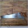 The saw has been thoroughly cleaned, jointed, resharpened and set by hand so that all the hard work of getting an old vintage saw right has been undertaken. We do this so that the next sharpening is easier and no more than a quick freshen up would be required. Those who are familiar with sharpening will know this is no small job and requires skill, effort and time to achieve good results.
