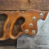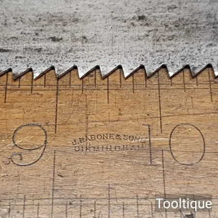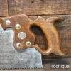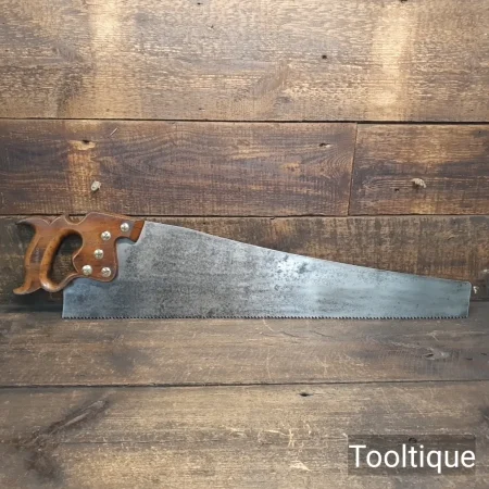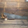 Vintage 26” Henry Disston Philadelphian 5 ½ Tpi Rip Handsaw, fully refurbished ready for use and in good used condition. Note: Sharpened rip with a relaxed rake at the toe gaining in aggression towards the handle. The saw has been thoroughly cleaned, jointed, resharpened and set by hand so that all the hard work of getting an old vintage saw right has been undertaken. We do this so that the next sharpening is easier and no more than a quick freshen up would be required. Those who are familiar with sharpening will know this is no small job and requires skill, effort and time to achieve good results.