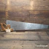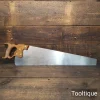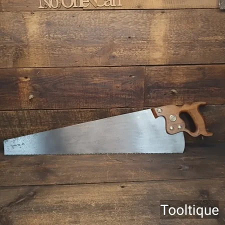 Vintage 26” Henry Disston USA D7 Rip Saw with 5 ½ TPI, fully refurbished and sharpened ready for use and in good used condition. Note: Sharpened with a relaxed rake at the toe for an easier start and less prone to snatching gaining in aggression towards the handle. The saw has been thoroughly cleaned, jointed, resharpened and set by hand so that all the hard work of getting an old vintage saw right has been undertaken. We do this so that the next sharpening is easier and no more than a quick freshen up would be required. Those who are familiar with sharpening will know this is no small job and requires skill, effort and time to achieve good results.