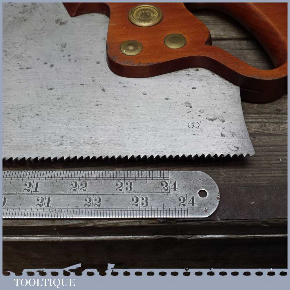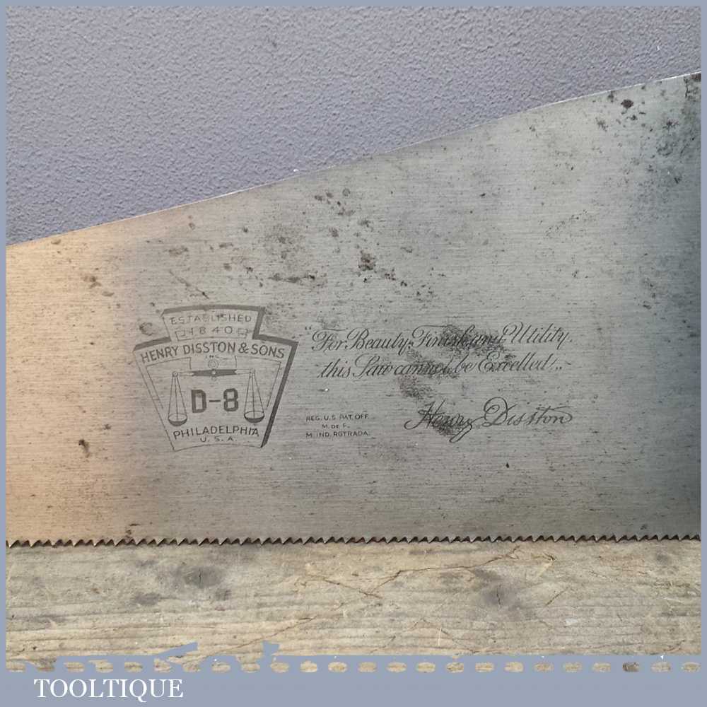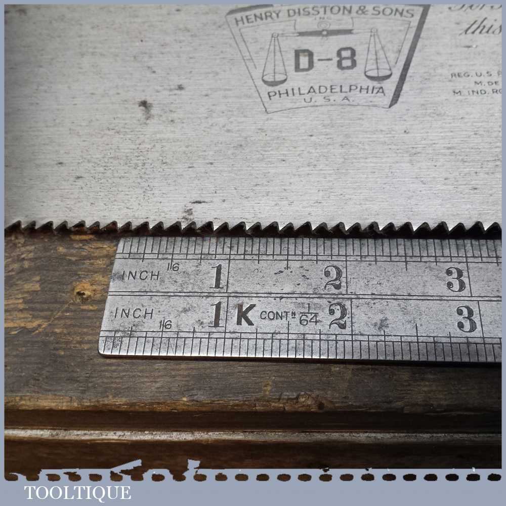 Vintage 26” Philadelphia Disston D8 cross cut saw in superb good un-cleaned condition and as you can see been looked after by the previous owner. It’s sharp and straight and has 8 TPI which are also at a constant height. You would be hard pressed to find a better example that hasn’t been refurbished.