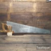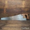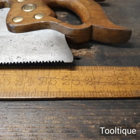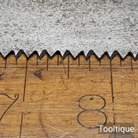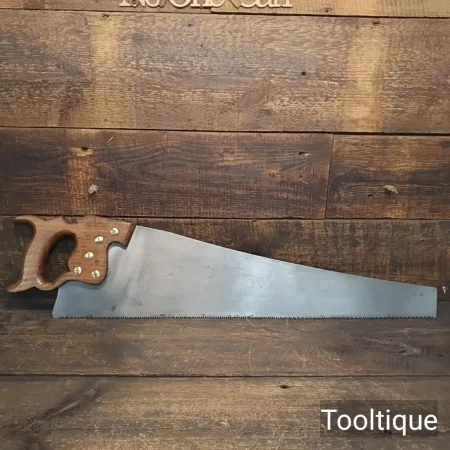 Note: Sharpened using all three disciplines or Rake, Slope, Fleam for a cleaner more efficient cut, sharpened by hand. The saw has been thoroughly cleaned, jointed, resharpened and set by hand so that all the hard work of getting an old vintage saw right has been undertaken. We do this so that the next sharpening is easier and no more than a quick freshen up would be required. Those who are familiar with sharpening will know this is no small job and requires skill, effort and time to achieve good results.