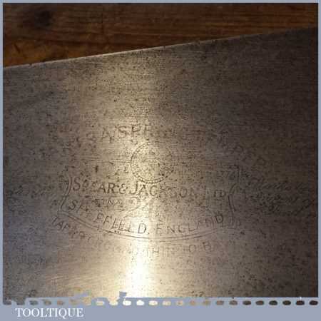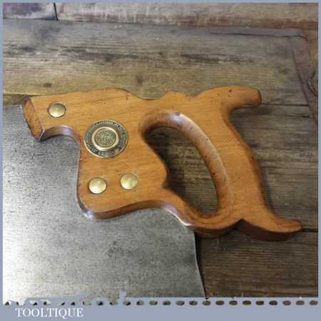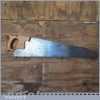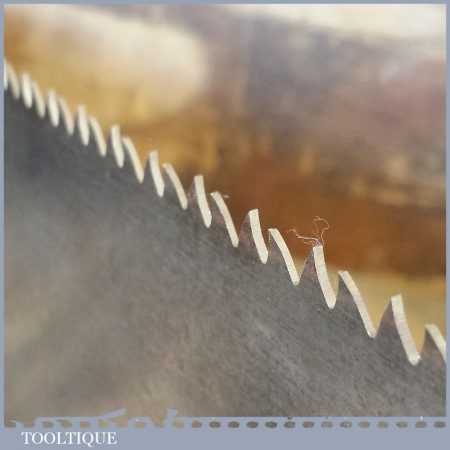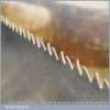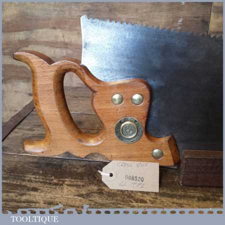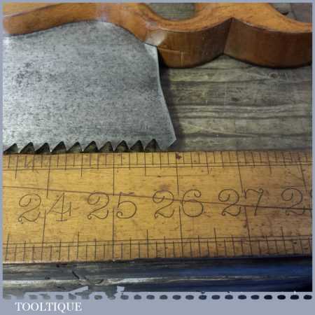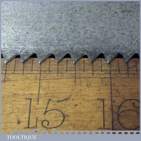 The saw has been thoroughly cleaned, jointed, resharpened and set by hand so that all the hard work of getting an old vintage saw right has been undertaken. We do this so that the next sharpening is easier and no more than a quick freshen up would be required. Those who are familiar with sharpening will know this is no small job and requires skill, effort and time to achieve good results.