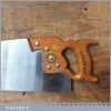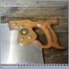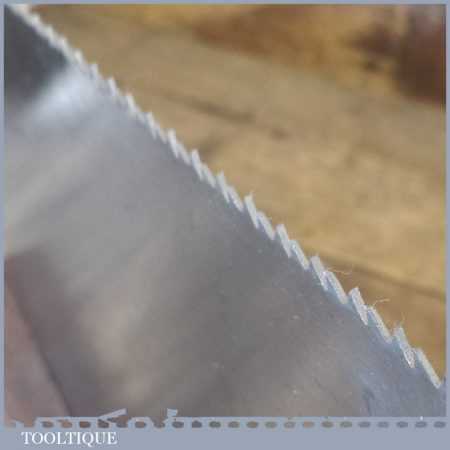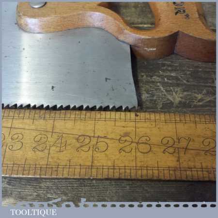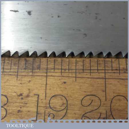 The saw has been thoroughly cleaned, jointed, resharpened as a rip and set by hand so that all the hard work of getting an old vintage saw right has been undertaken. We do this so that the next sharpening is easier and no more than a quick freshen up would be required. Those who are familiar with sharpening will know this is no small job and requires skill, effort and time to achieve good results.
