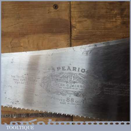 Superb Vintage 26” Spear & Jackson No: 88 superior 7 tpi cross cut handsaw in great used condition. Manufacturer at the time when they their reputation was at its height, and not to be confused with what they produce today.