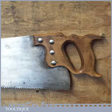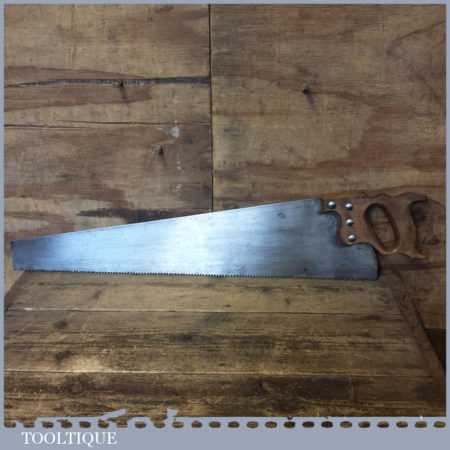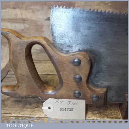 Vintage 26” trade rip saw with 5 tpi, fully refurbished and sharpened ready for use. Makers label long gone but almost certainly Sheffield made and has good tough spring steel.