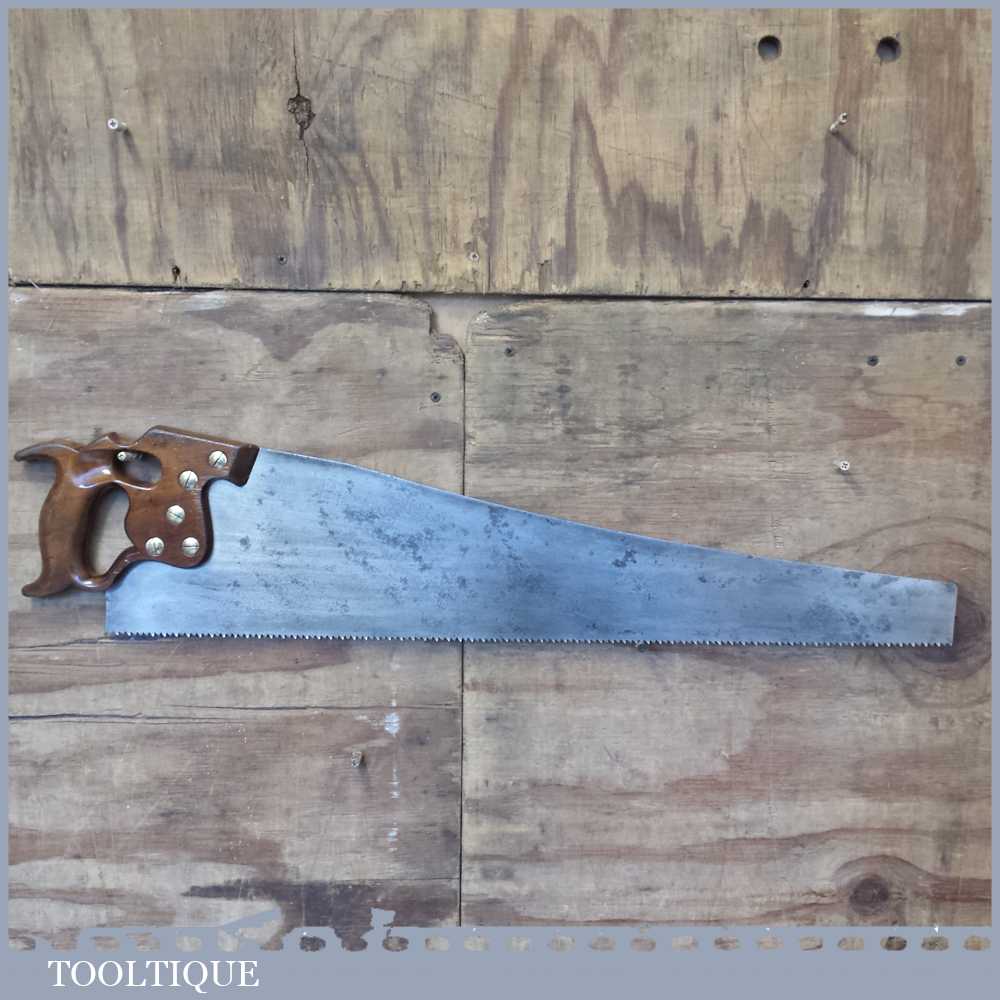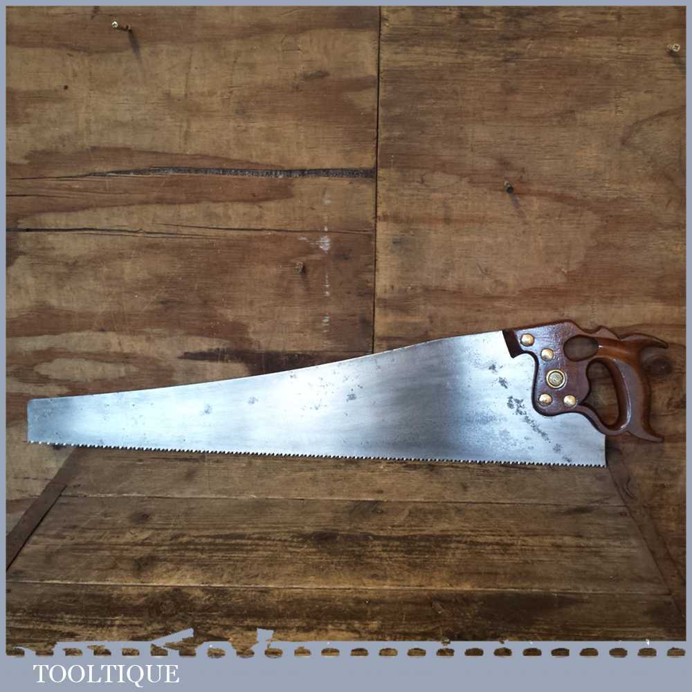 Vintage 28” Henry Disston Philadelphia D8 rip saw with 5 teeth per inch sharpened ready for use. Note: The saw has also been breast jointed to reduce drag. Old timers often regarded these old Philly Disston’s as the best saws ever produced by any saw maker, before or since.