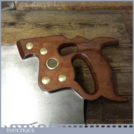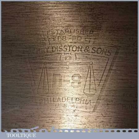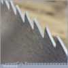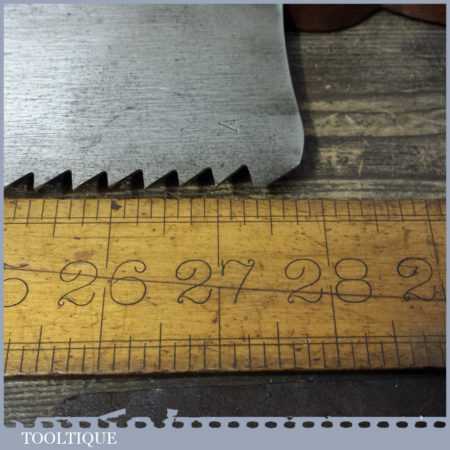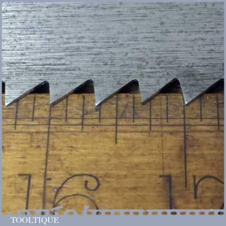The saw has been thoroughly cleaned, jointed, resharpened and set by hand so that all the hard work of getting an old vintage saw right has been undertaken. We do this so that the next sharpening is easier and no more than a quick freshen up would be required. Those who are familiar with sharpening will know this is no small job and requires skill, effort and time to achieve good results.