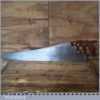 The saw has been thoroughly cleaned, jointed, resharpened and set by hand so that all the hard work of getting an old vintage saw right has been undertaken. We do this so that the next sharpening is easier and no more than a quick freshen up would be required. Those who are familiar with sharpening will know this is no small job and requires skill, effort and time to achieve good results.
