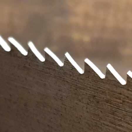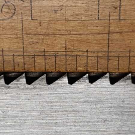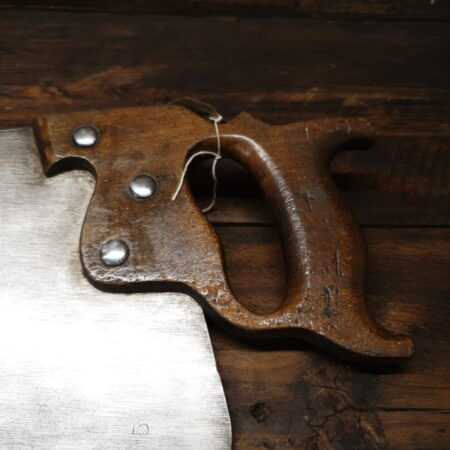 The saw has been thoroughly cleaned, jointed, resharpened and set by hand so that all the hard work of getting an old vintage saw right has been undertaken. We do this so that the next sharpening is easier and no more than a quick freshen up would be required. Those who are familiar with sharpening will know this is no small job and requires skill, effort and time to achieve good results.