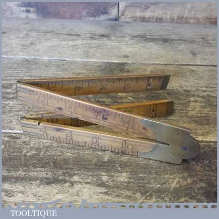 Vintage 2ft long boxwood & brass folding ruler in fair usable condition.