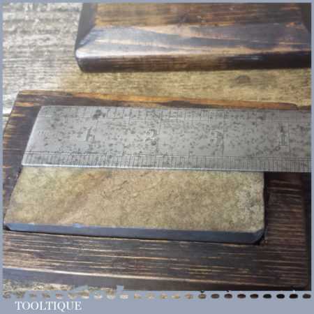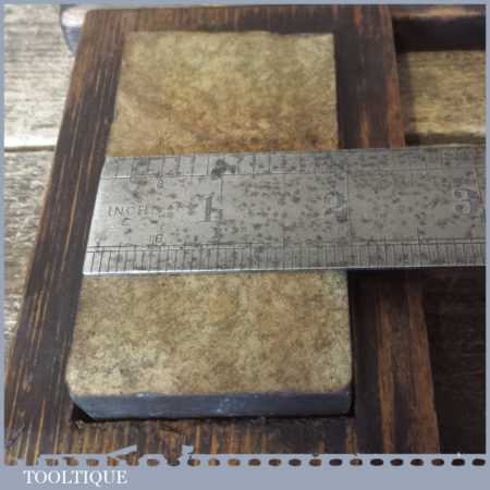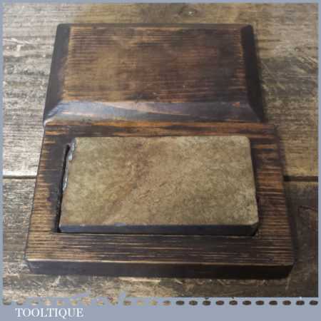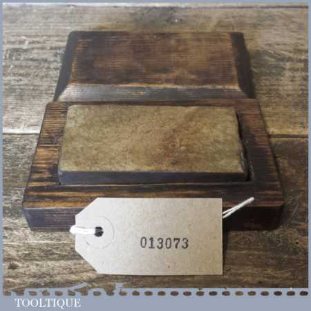 Vintage 3 ½” x 2” natural Washita oil stone in a beechwood box and in good used condition. Note: this stone has been lapped flat ready for use and is approx 7/8” thick
