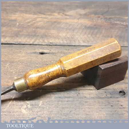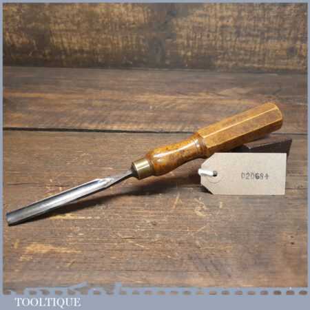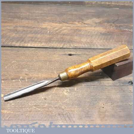Vintage carpenter’s 3/8” gouge chisel with hexagon beechwood handle in good used condition, fully refurbished sharpened and honed ready for use.