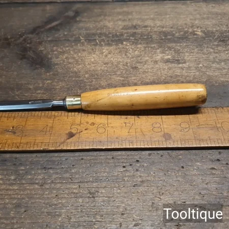 Vintage 3/8” I. Sorby Bevel Edge Chisel with a Boxwood Handle, refurbished ready for use and in good used condition. All refurbished chisels are water cooled during the sharpening & flattening process to ensure the tempering is not affected.