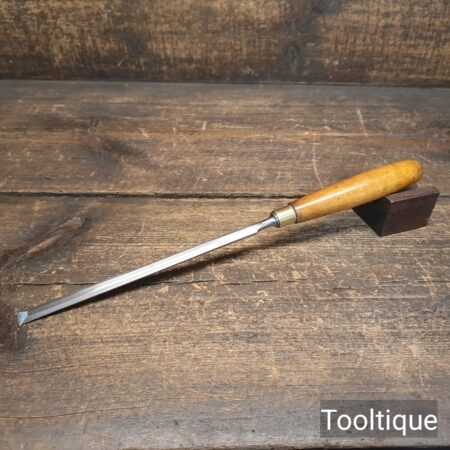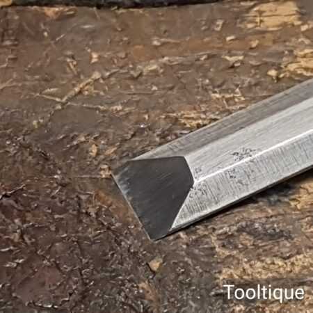 The chisel has been checked to ensure the tang is seated properly and the handle is solid and fit for use. All refurbished chisels are water-cooled during the sharpening process to ensure the tempering is not affected.